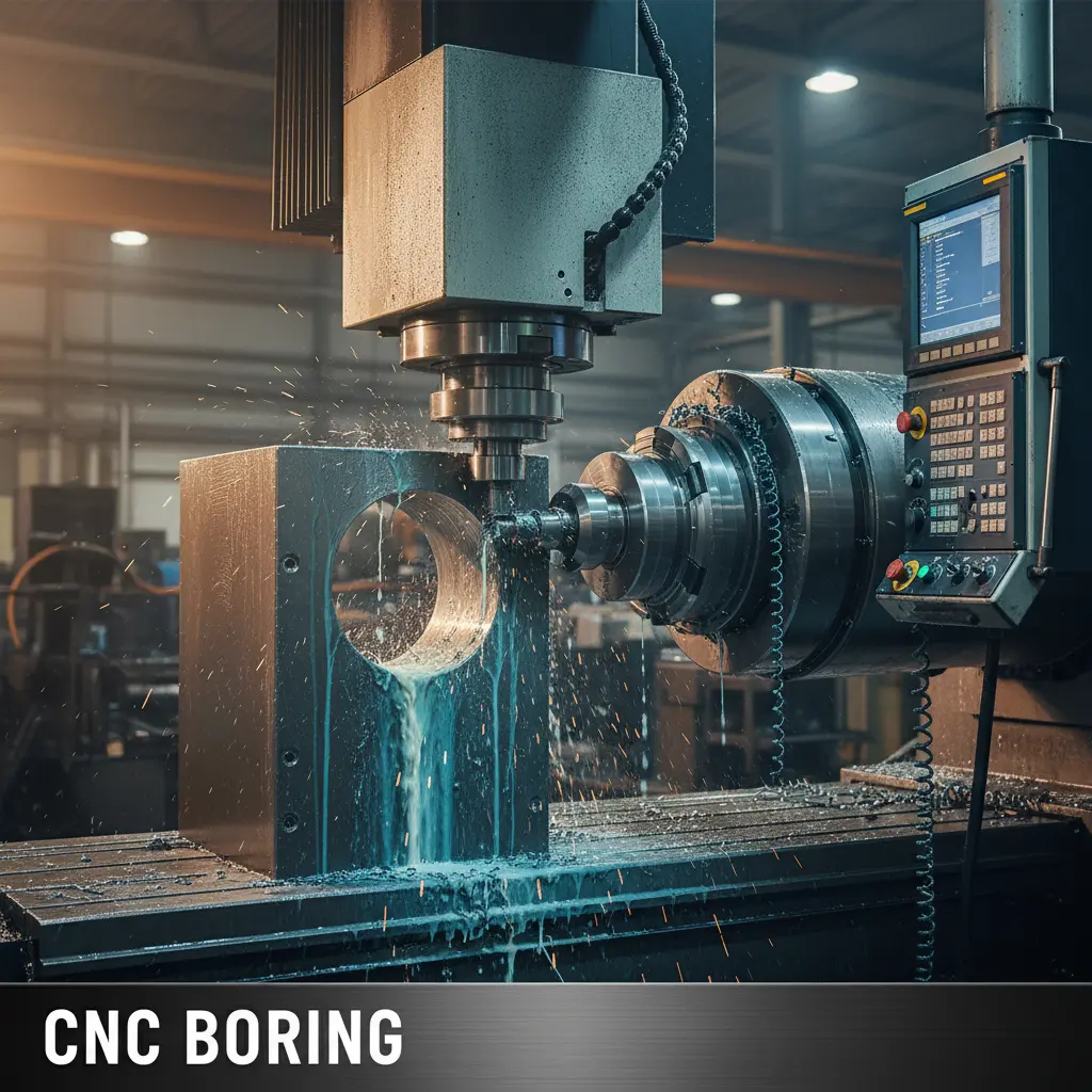 In our CNC boring process, we use precise machining to enlarge and refine existing holes. This is used when tight tolerances, specific diameters, and superior surface finishes are required.