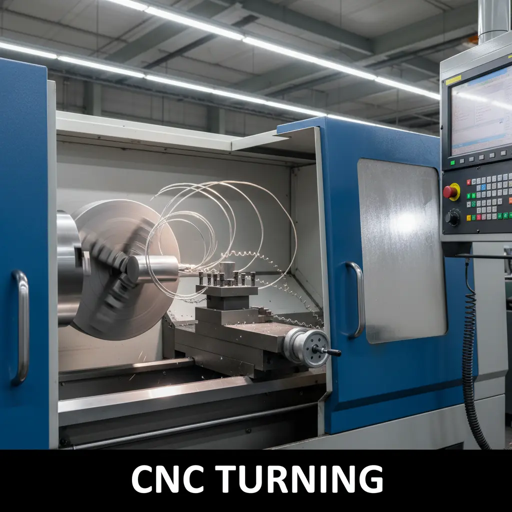 CNC Turning is a high-precision machining process where a computer-controlled lathe rotates the workpiece against a cutting tool to produce cylindrical or symmetrical parts with accuracy and efficiency.